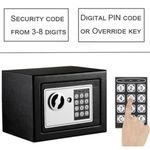 Coffre-fort électronique pour ranger des objets de valeur, tels que des pièces de monnaie, des bijoux, des certificats, de l’argent, des livrets, des actions, des reçus, ou des documents importants, des supports de données.