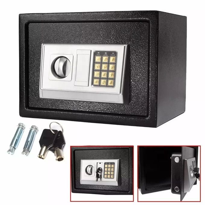 Ce coffre-fort électronique hautement sécurisé est parfait pour une utilisation à la maison ou au bureau. Ce coffre-fort électronique est construit en acier robuste avec une finition avec revêtement en poudre. Équipé d’un mécanisme de verrouillage à 2 boulons, ainsi que le code numérique d’ouverture du système, ce coffre-fort offre une protection contre le vol et le cambriolage. Ce coffre-fort est durable ,le plancher est doublé avec un tapis gris pour empêcher vos objets de valeur de se gratter. Ce coffre-fort électronique peut être fixé au mur ou fixé au sol à l’aide de boulons inclus. Livré aussi avec 4 piles AA.-