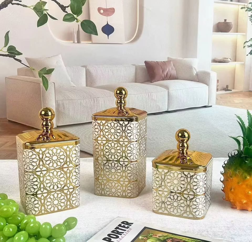Utilisation : Bien qu’ils puissent être utilisés pour stocker des aliments secs comme le thé, le café, le sucre ou des bonbons, ils sont également populaires comme objets de décoration intérieure modernes.