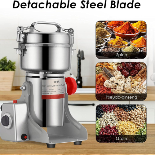 Ce moulin à grains à haute vitesse en acier inoxydable se caractérise par une conception superbe, de petite taille, léger, très efficace, facile à utiliser. Le broyeur est sûr et permet d’économiser de l’électricité. qu’une minute. Peut briser rapidement toutes sortes d’aliments déshydratés, riz, maïs, sésame, soja, nourriture pour poissons, poivre, médicaments (tels que ganoderma, réglisse, perles, même pierre, etc.)