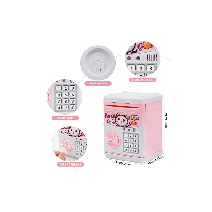 Gardez votre argent : grand espace de rangement, vous pouvez y placer des pièces de monnaie et des billets de banque, pour répondre à vos besoins de stockage d’argent. Livré avec une clé, insérez la clé et tournez pour ouvrir la porte.